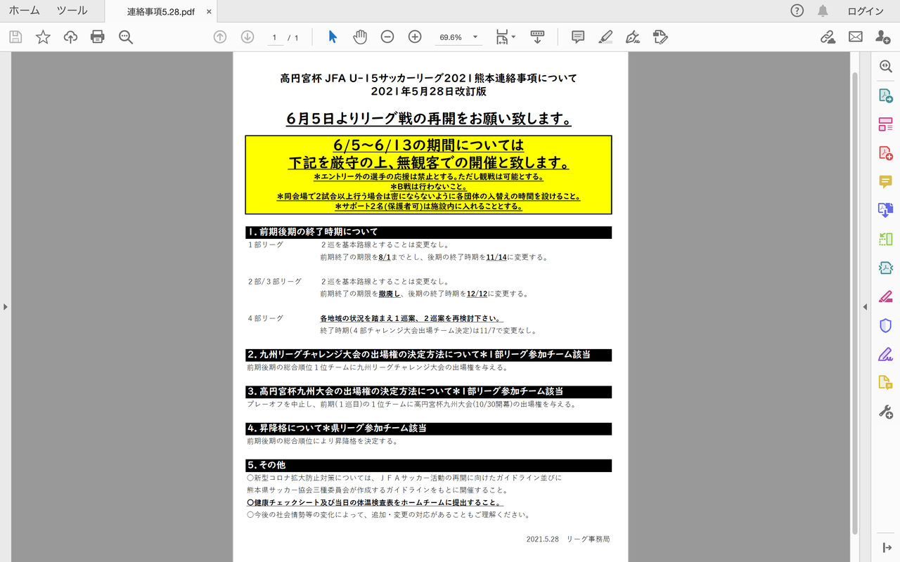 高円宮杯jfa U 15サッカーリーグ21 熊本県連絡事項 Fckマリーゴールドkumamoto 最新ニュース